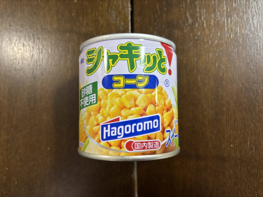 コーン缶が一番安く手に入るので、各スーパーなどで買い溜めすると良いと思います。