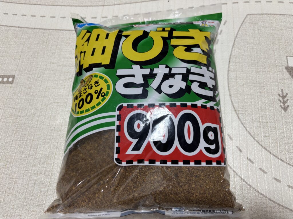 細引きや荒引きのタイプのさなぎ粉が海釣りコーナーに置いている場合がほとんどですが、大体900gで700円〜800円くらいします。