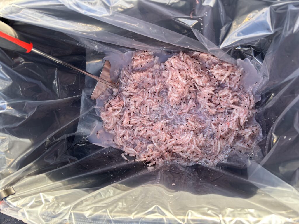まずは全解凍もしくは半解凍したオキアミ1.5キロを入れます。