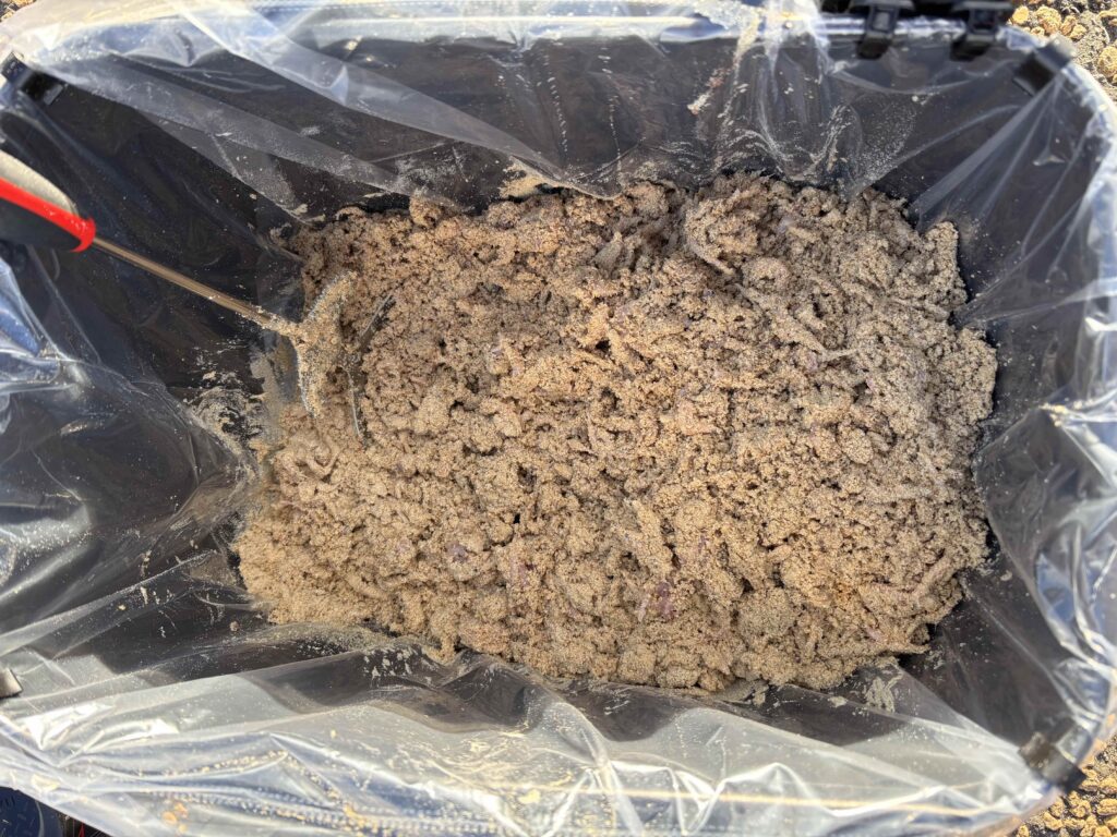 ここから海水を少し足したり、空気を抜くように練り込んだりすることで、粘りが出て、より底付近に効きやすく遠投しやすい撒き餌に仕上がります。