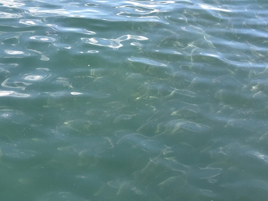 オキアミのみが固形物として落下していくより、明らかに魚の集まる数が違います。