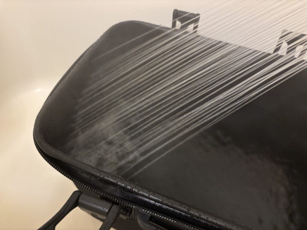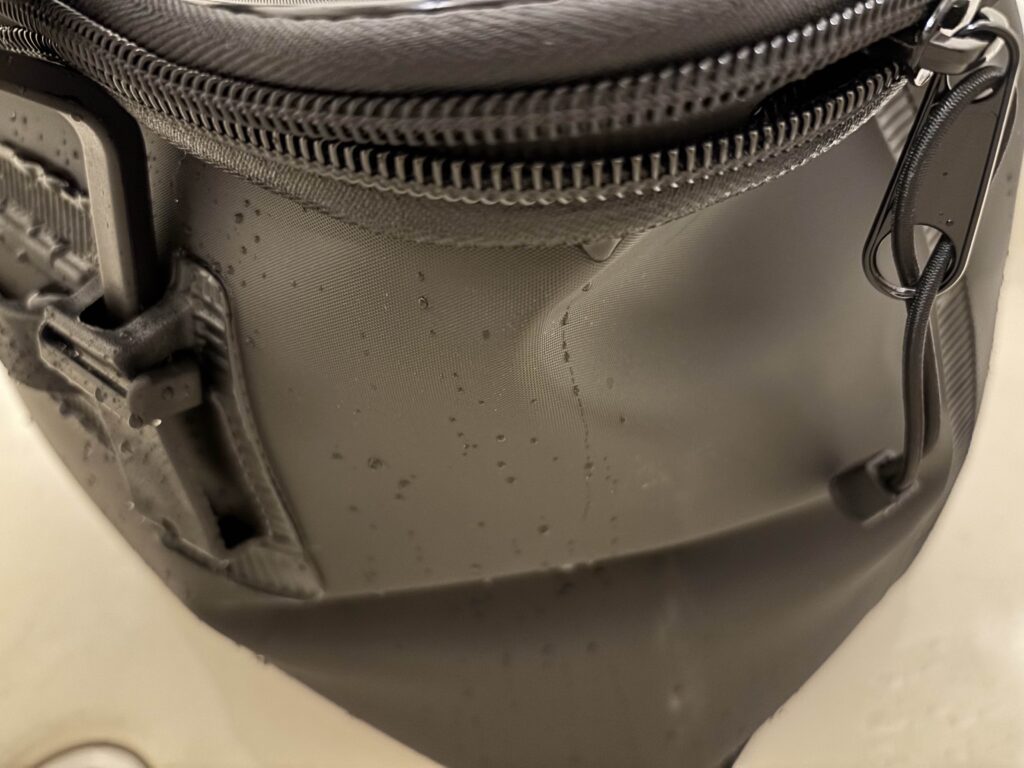 その後、ファスナーの下から水がだらだら出るようになってしまい、バッカンとして水を貯めると漏れるようになってしまいました。