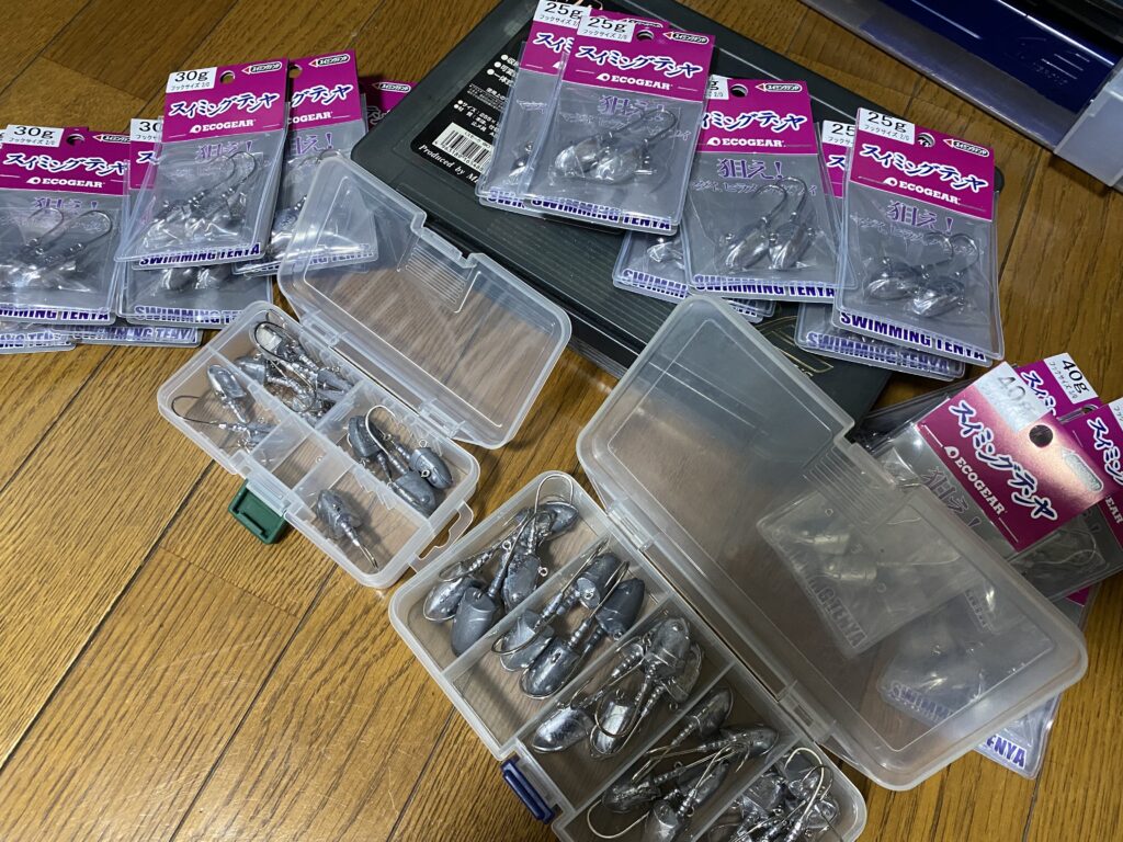 ワーム類やルアー、テンヤなどを平置きできるように大量に入れていました。