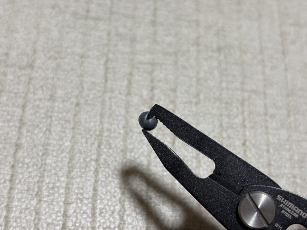 ガン玉を開く時にやりにくいという意見もあり、確かに外す際は専門道具に劣る部分はありますが、ブライヤーだけ取り出して作業できる利便性の方が今は優っています。