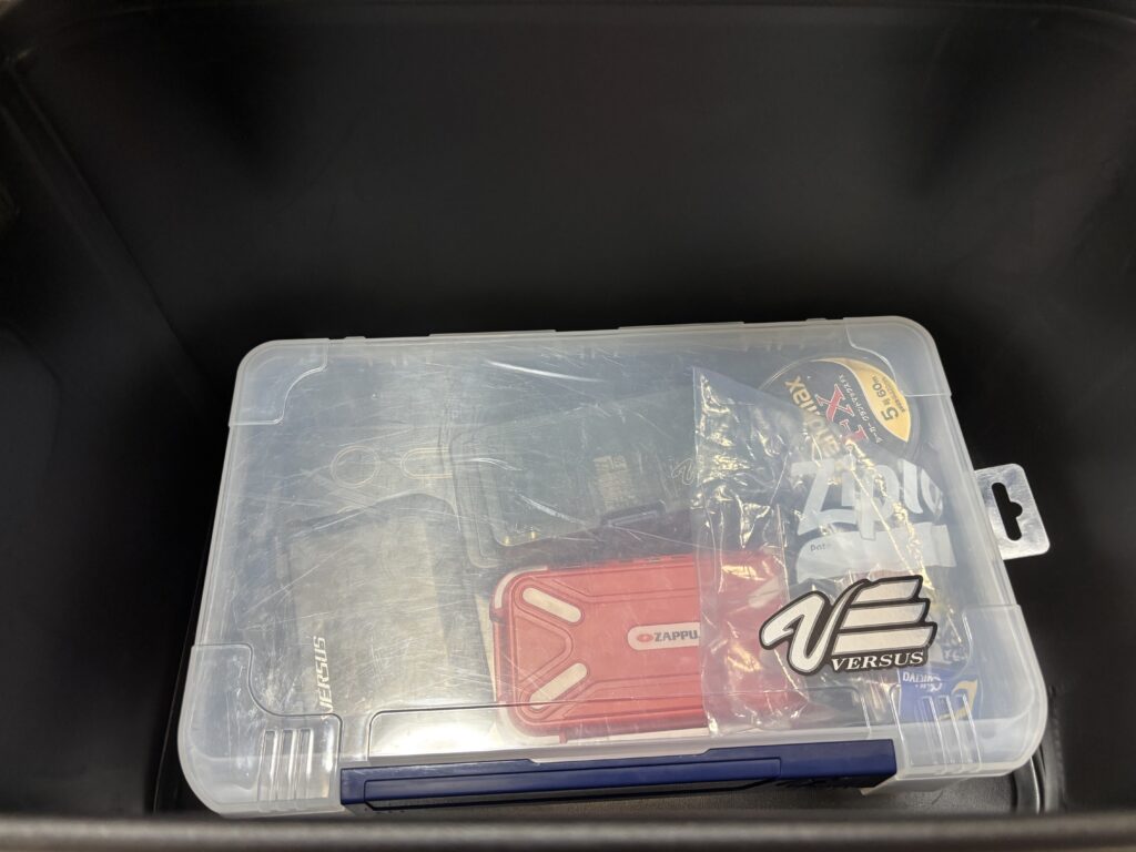 ちょっと遠征に出たり、何を釣るかわからないで行く時はこのタックルストレージ(バッカン)毎、車に積んでいき、必要なものを取り出してやるスタイルです。